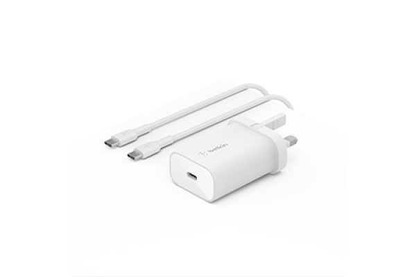 25W USB-C PD/PPS Home Charger with 1M PVC, C-C CABLE WHT