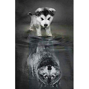 Diamond Painting Figured'Art Dog and Wolf Reflection 40x50cm Already Framed Square diamonds