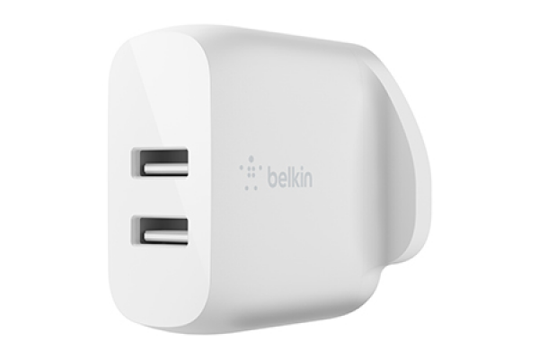 Dual USB-A Wall Charger, 12W X2, WHT