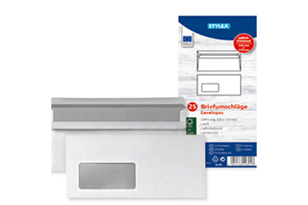 Envelopes, DIN long, white, 110 x 220 mm, white, self adhesive 25 pcsPrices, Promotions, Specifications, Availability and Offers may change without any notice. Pricing, typographic, or photographic errors may occur.