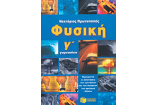 Φυσική Γ' Γυμνασίου Συγγραφέας: Πρωτοπαπάς Νεκτάριος Περιεχόμενα: Κινήσεις, δυνάμεις, πίεση, έργο και ενέργεια, ταλαντώσεις, μηχανικά κύματα, το ηλεκτρικό ρεύμα, τ ο ηλεκτρικό ρεύμα μεταφέρει ενέργεια, ηλεκτρομαγνητικές δυνάμεις, γεννήτριες και κινητήρες.