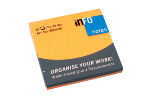 INFO-NOTES 75X75MM VIVID-ORANGE 80 sheets