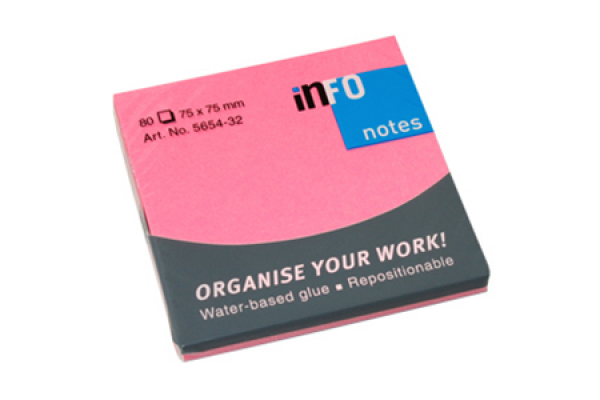 INFO-NOTES 75X75MM VIVID-PINK 80 sheets