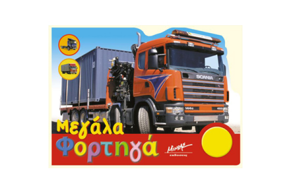 ΜΕΓΑΛΑ ΦΟΡΤΗΓΑ Σελίδες : 12 Oλοζώντανα, διασκεδαστικά, πολύχρωμα φορτηγά που ξετρελαίνουν! Πάτησε το κουμπί σε κάθε σελίδα, μέτρησε, ταύτι σε, βρες τα χρώματα, παίξε κρυφτό, στα πιο Mεγάλα Tρακτέρ που κάνουν πολύ θόρυβο!