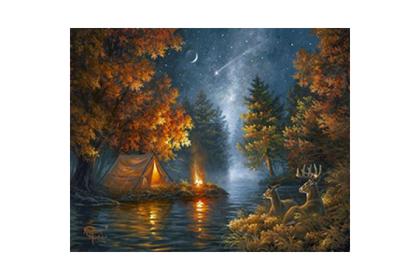 Paint by numbers Figured'Art Camping tent near the lake 40x50cm Already Framed