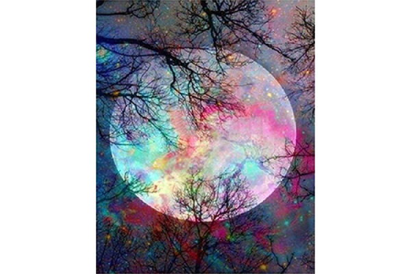 Paint by numbers Figured'Art Full Moon with colorful reflections 40x50cm Already Framed