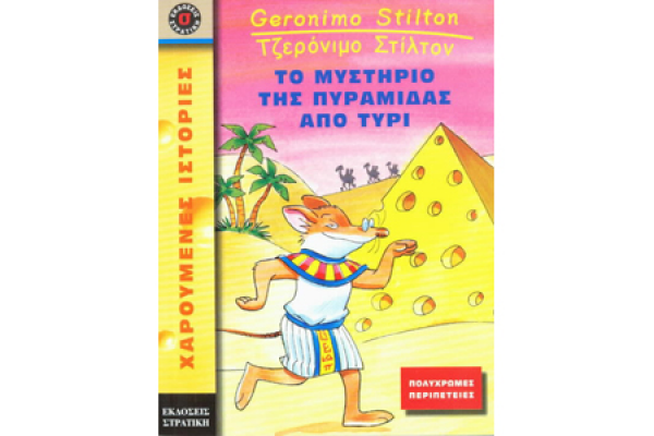 " Φεύγω για την Αίγυπτο (αν είναι δυνατόν...), όπου διασχίζω την έρημο στην πλάτη μιας καμήλας (φρίκη...) και εξερευνώ την πυραμίδα του Χέοπα. Εδώ, ανάμεσα σε μούμιες (αααα !), σαρκοφάγους και ιερογλυφικά, ανακαλύπτω το μυστικό ενός επιστήμονα που έχτισε μια μυστηριώδη πυραμίδα, κίτρινη σαν το τυρί..." Σχήμα: 14,5χ18,5 εκ., Σελίδες: 128